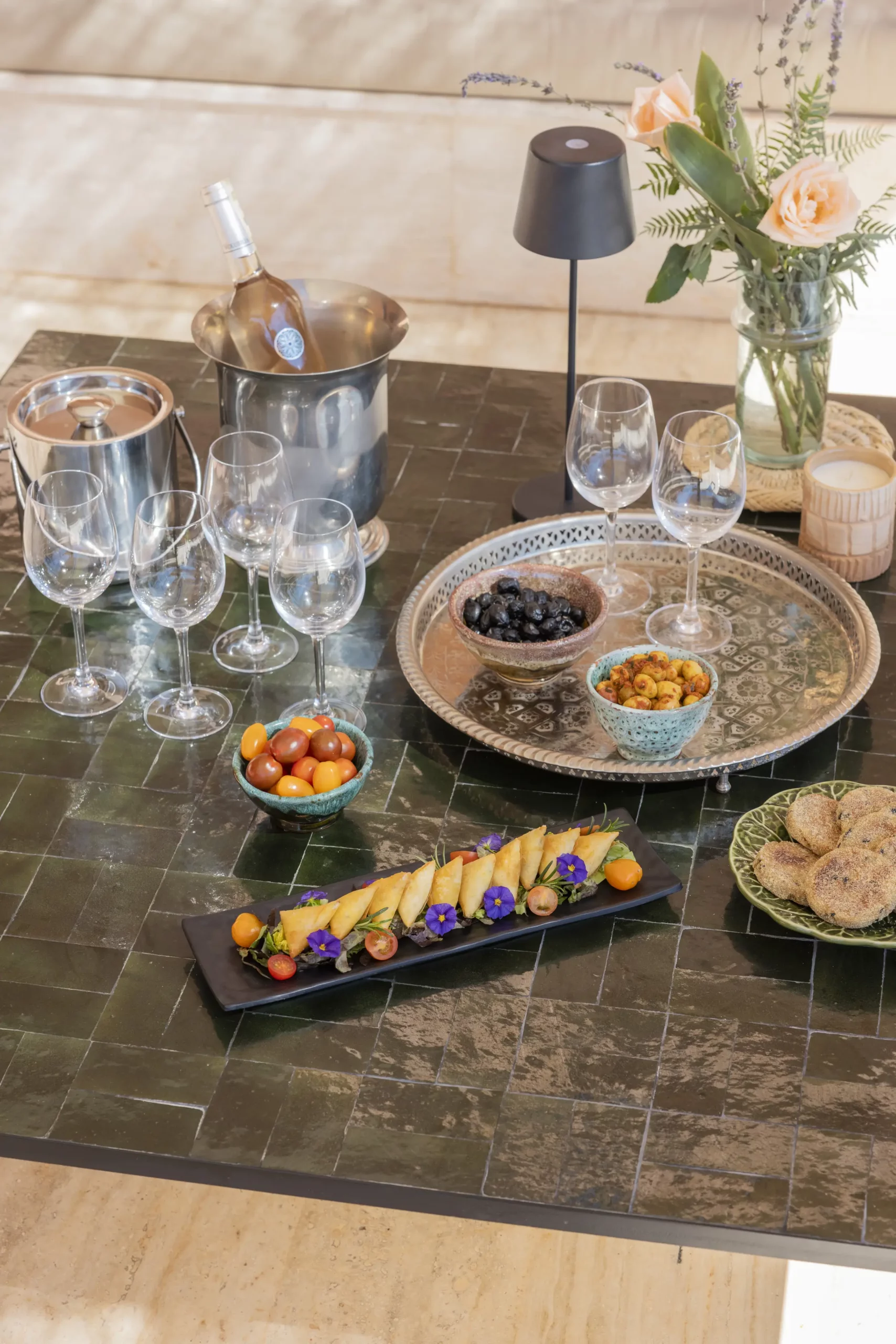 Pour prolonger ces moments de plaisir, nous proposons également le déjeuner et le dîner, élaborés avec soin par notre talentueuse cuisinière Houida. Les menus vous seront communiqués lors de votre réservation, avec la possibilité d’adapter la cuisine selon vos envies.