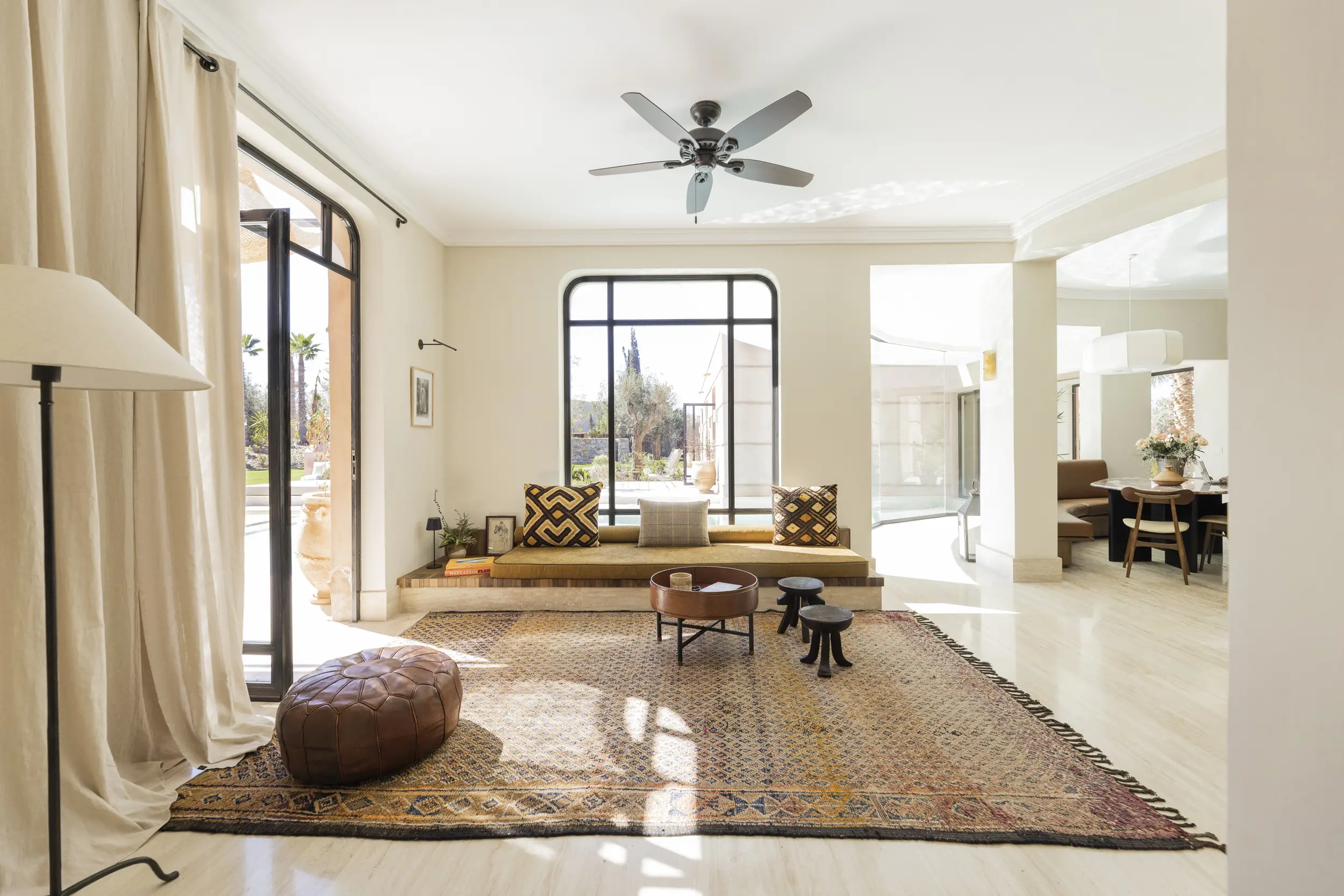 À l’extérieur, découvrez un magnifique jardin de 4500m² sans vis-à-vis, idéal pour se détendre et profiter du calme ainsi que du soleil de Marrakech.